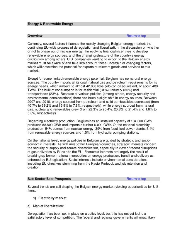 The Liberalisation of . Europe's Electricity Markets - Is the environment paying the price In particular the trade in electricity may play a relatively minor role when compared to that in electricity companies. Belgium has been given an extra year by the Directive for its transposition ... Fetch Doc
