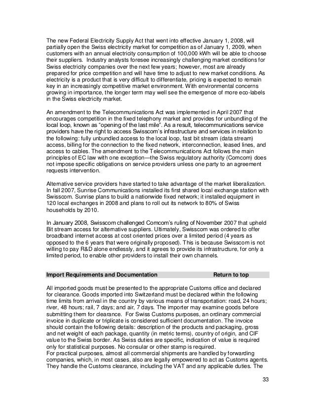Deregulation Of The Swiss Electricity Industry: Implication ...